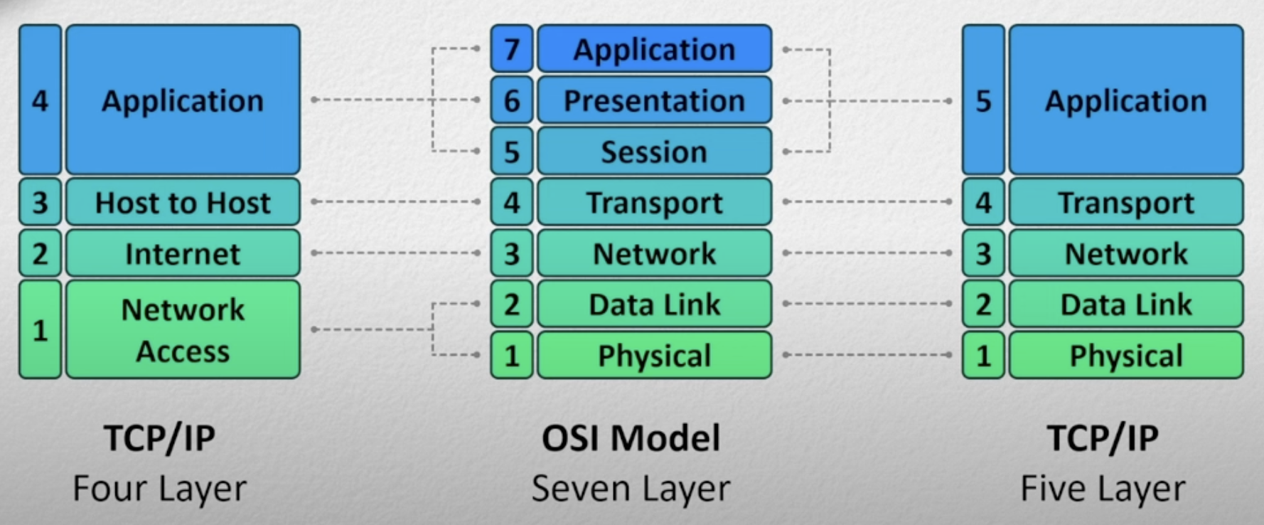 - Layer 1, 2 are combined as Network Access Layer in TCP/IP-5 layer model